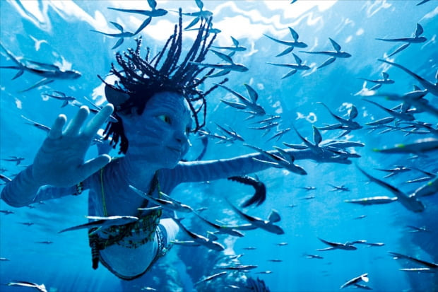 아바타: 물의 길의 가장 큰 기술적 성과는 수중 모션 캡처 기술의 상용화다. 제임스 카메론은 영화 타이타닉을 통해 수중 연출의 중요성과 감각을 이미 증명한 바 있으며, 이번 작품에서는 그 경험을 바탕으로 전례 없는 촬영 방식을 시도했다. 배우들은 실제 수조에서 물속 연기를 소화했고, 이를 위한 별도의 훈련을 통해 몇 분간 숨을 참는 고난도의 장면도 직접 소화했다. 이 같은 노력은 CG와 실제 배우의 움직임 사이의 간극을 최소화했으며, 결과적으로 관객은 현실처럼 살아있는 수중 장면을 경험하게 된다. 영화 속에 등장하는 다양한 해양 생물은 단순한 시각적 장치가 아니다. 각각의 생명체는 고유의 생태적 역할과 상호작용을 통해 판도라의 바다 생태계를 구성하며, 인간과 자연의 균형을 상징적으로 보여준다. 특히 토루크의 수중 버전이라 할 수 있는 ‘툴쿤’이라는 생명체는 메투카이나 부족과 정신적 유대를 맺는 존재로 묘사되며, 단순한 탈것이 아니라 문화적 신성성과 연결된다. 이처럼 아바타: 물의 길은 시각적 스펙터클을 넘어서, 생태 철학적 메시지를 전하는 데 집중한다. 또한 바다 부족의 언어, 제스처, 신화 등도 디테일하게 설정되어 있으며, 이는 세계관의 몰입도를 높이는 동시에 다문화 사회에 대한 은유로 작용한다. 아바타 1편이 숲의 생태계를 통해 자연과 인간의 충돌을 그렸다면, 2편은 바다를 통해 더 확장된 메시지를 던진다. 특히 자연과 하나되는 삶의 방식, 그리고 그 안에서 인간이 어떻게 공존할 수 있을지를 보여주는 방식은 단순한 SF를 넘어선 철학적 깊이를 담고 있다.
